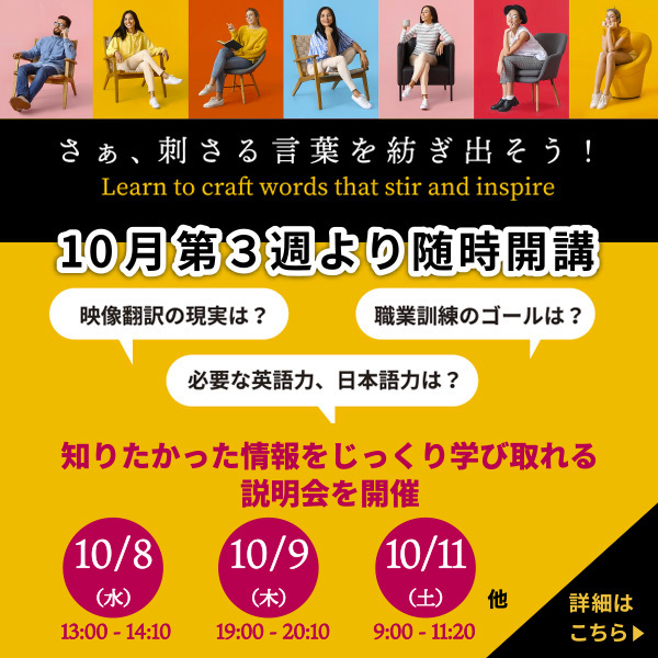 約1時間でJVTAの詳細が分かるイベントや個別の相談会などを随時開催しています。映像翻訳にご興味をお持ちの方はお気軽にご参加ください。