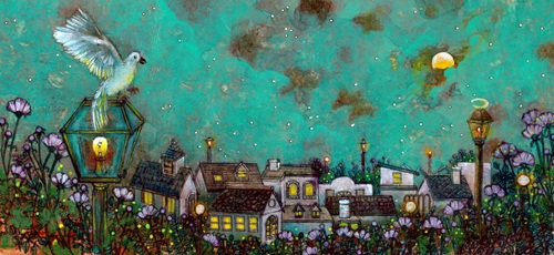 「2020年、突然コロナ禍が始まり、頭の中が真っ白になる経験をしました。映像翻訳の仕事が激変し、そこからもがきながら絵の制作を続けているうちに、翻訳の仕事が少しずつ戻り、気持ちを持ち直しました。そんな経験を踏まえて2024年、『灯火計画』と題し『個々の心に、そして世界に灯火を』のコンセプトで『灯火計画』というシリーズを描き始めました。われながらベタなコンセプトだなと思いつつも、描きたい場面が浮かび続けて2年となります。」(瀬尾友子さん)